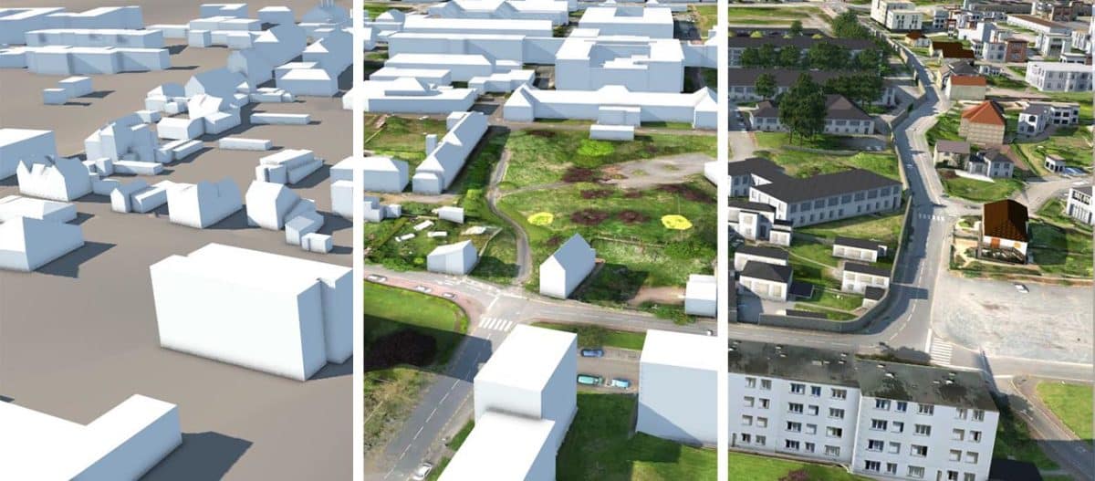 Relevé de l’ensemble du site et modélisation 3D texturée de l’ensemble du site, y compris les rues adjacentes.